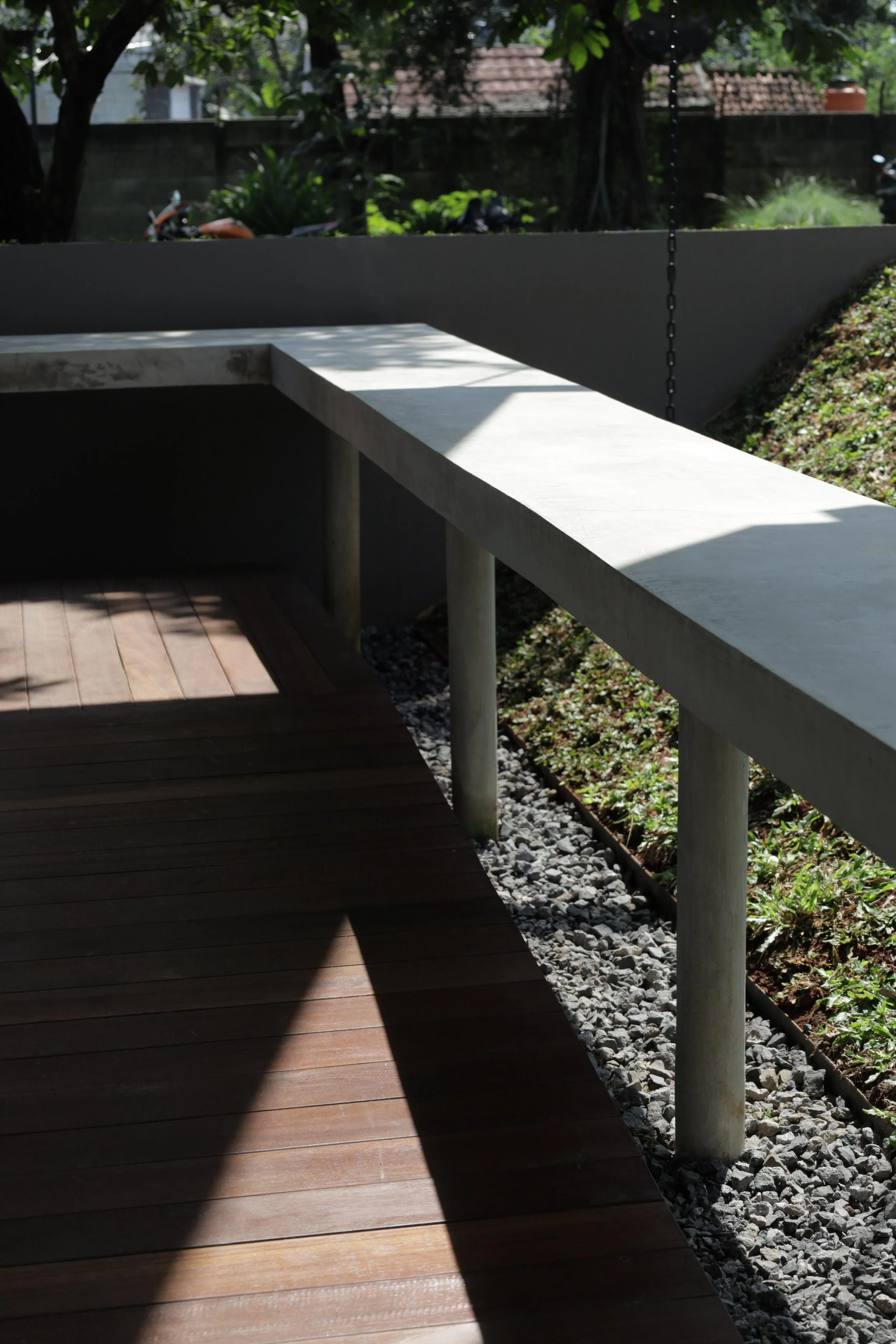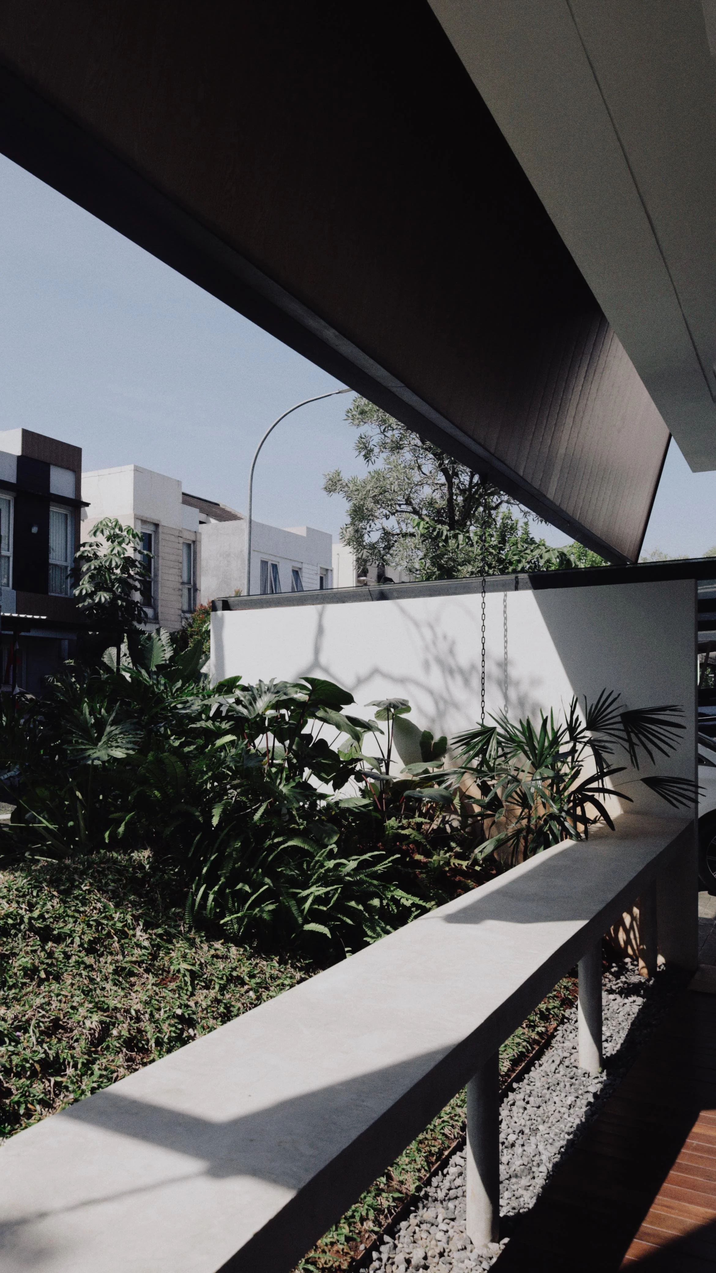"Rumah Teduh" portrays a house designed with special attention to the relationship between the interior spaces and the surrounding greenery. Situated on a 200 m² plot in BSD, this house leverages the potential of the green space to the north by creating a transitional space in the form of a long corridor with a bench. This space functions as an extension of the living room, connecting the interior with the natural surroundings.